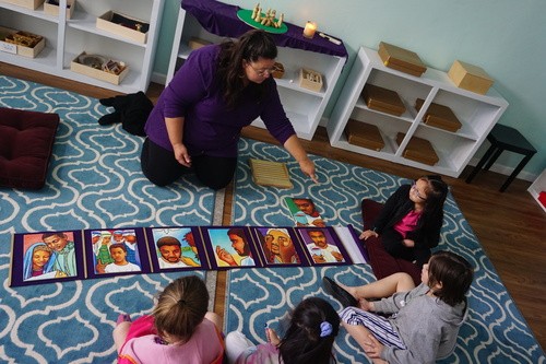Making meaning through story, wonder, and play. Each Sunday at 9:00AM during worship our children are invited to enter the children's sanctuary and worship God in their own special way. We tell a sacred (bible) story and ask questions to help children explore there relationship with God and then we let the children explore through crafts, song, reading and more.